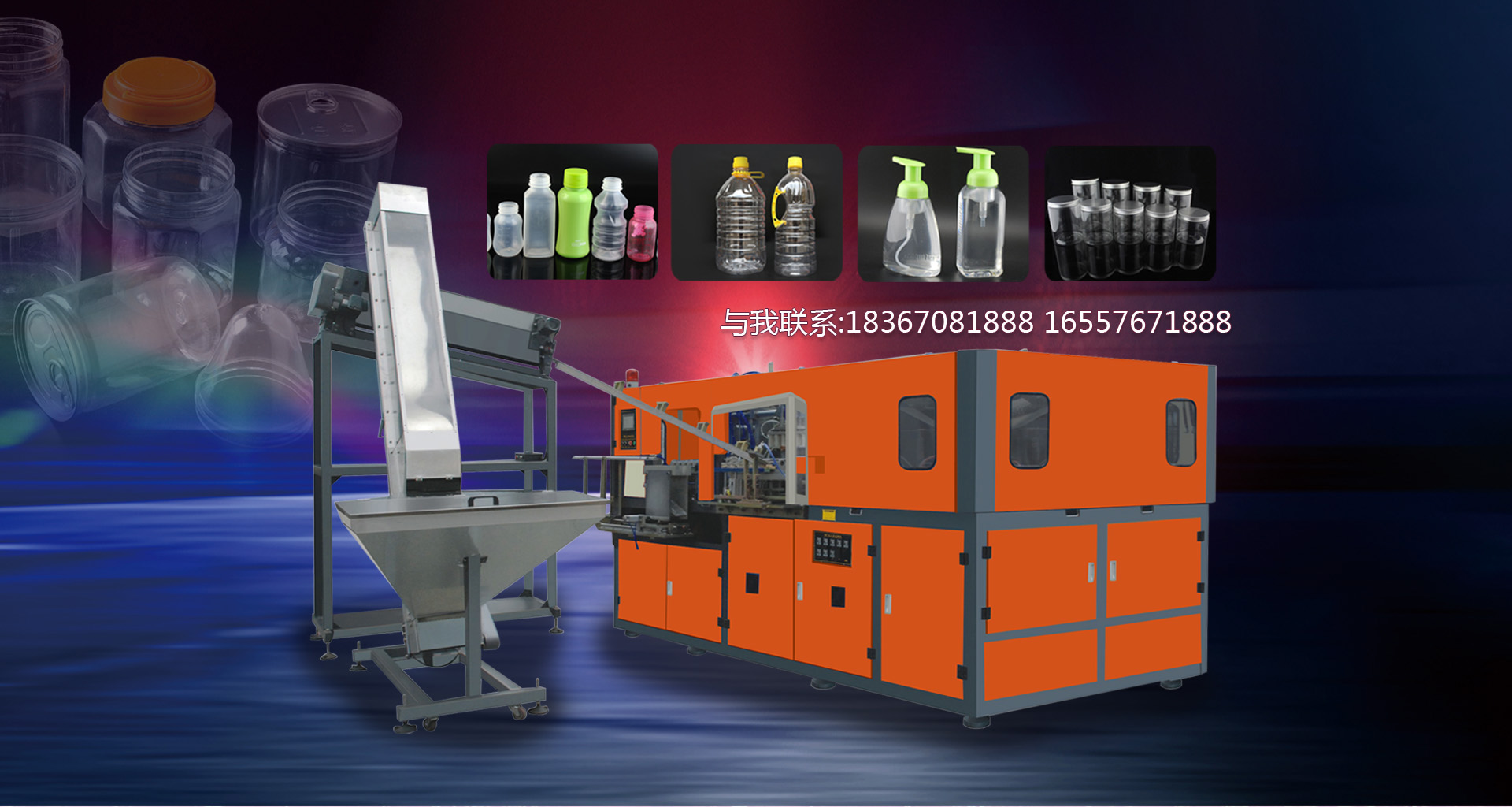 臺輝機械融合國內外的先進技術和理念,專業設計、生產和銷售三大類,二十多種規格型號的全自動吹瓶、半自動吹瓶機。適用于生產以PET、PP、PE為原料,從5毫升至40升的各類塑料瓶制品,如:礦泉水瓶、飲料瓶、化妝品瓶、奶瓶、花生油瓶、PET五加侖水桶、太空杯以及燈罩,優良的品質、穩定的性能、優越的性價比,使公司產品不僅暢銷國內市場,并出口到東南亞、中東、非洲以及歐美等國家和地區,深受客戶的好評和信賴。